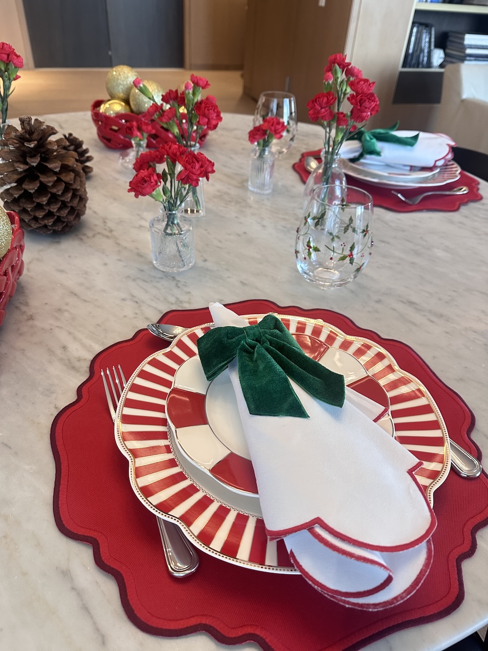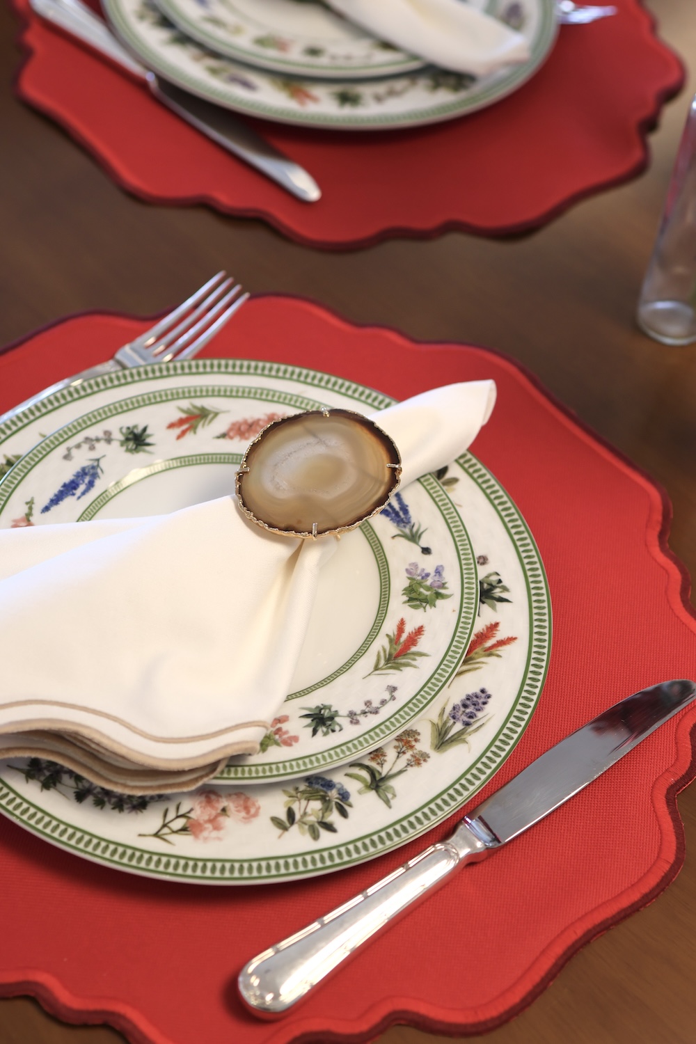 Nowhere does Lulu Maison’s artistry shine brighter than in its Holiday Collection, where the magic of the season meets the sophistication of fine design. Each piece evokes the enchantment of Christmas gatherings—the gleam of candlelight on embroidered napkins, the rich sheen of metallic threads, and the tactile beauty of woven placemats that shimmer in tones of deep red, soft gold, and crisp white accented with emerald. Finishing touches like ornamental napkin rings inspired by winter florals and gilded accents elevate each table into a tableau of memory and celebration. Whether set for an intimate supper or a grand holiday feast, a Lulu Maison table feels like an heirloom moment—graceful, inviting, and unforgettable.