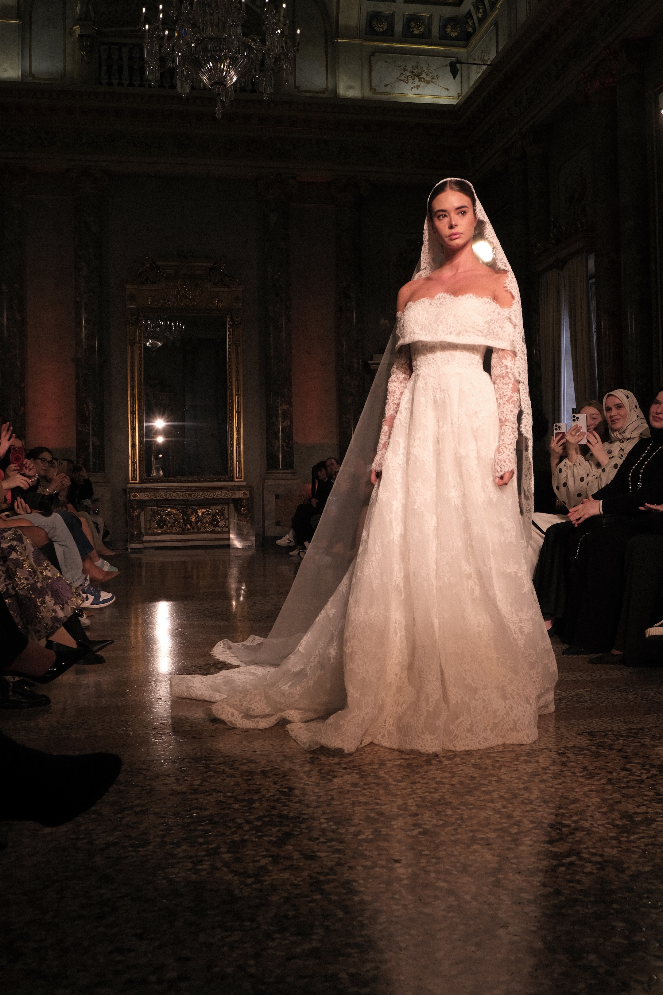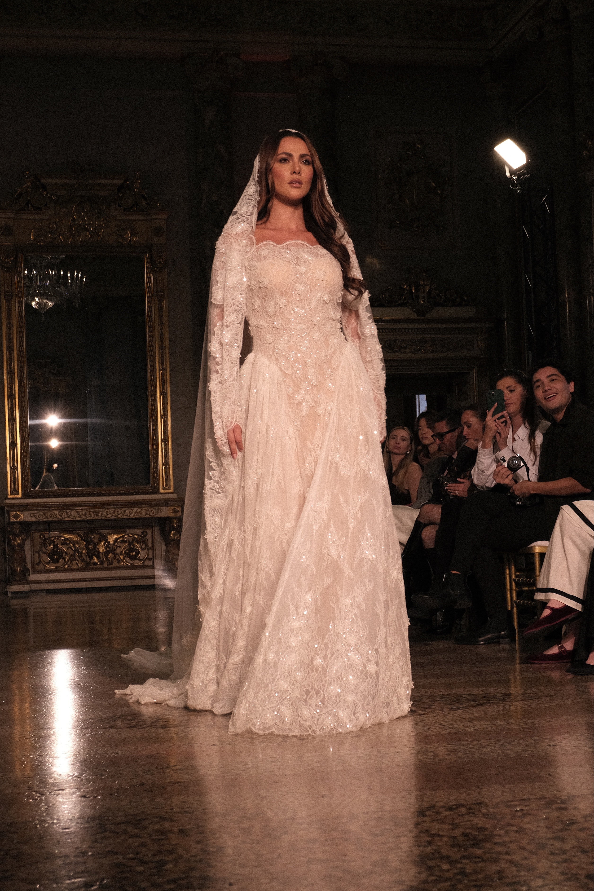 M.Kais made its official debut on the Milan Fashion Week calendar in September, unveiling its Spring/Summer 2026 collection before an international audience. The runway presentation, held at the 18th-century baroque Palazzo Serbelloni, as part of the city’s celebrated fashion week lineup, drew an energetic crowd eager to see the brand’s latest bridal line.